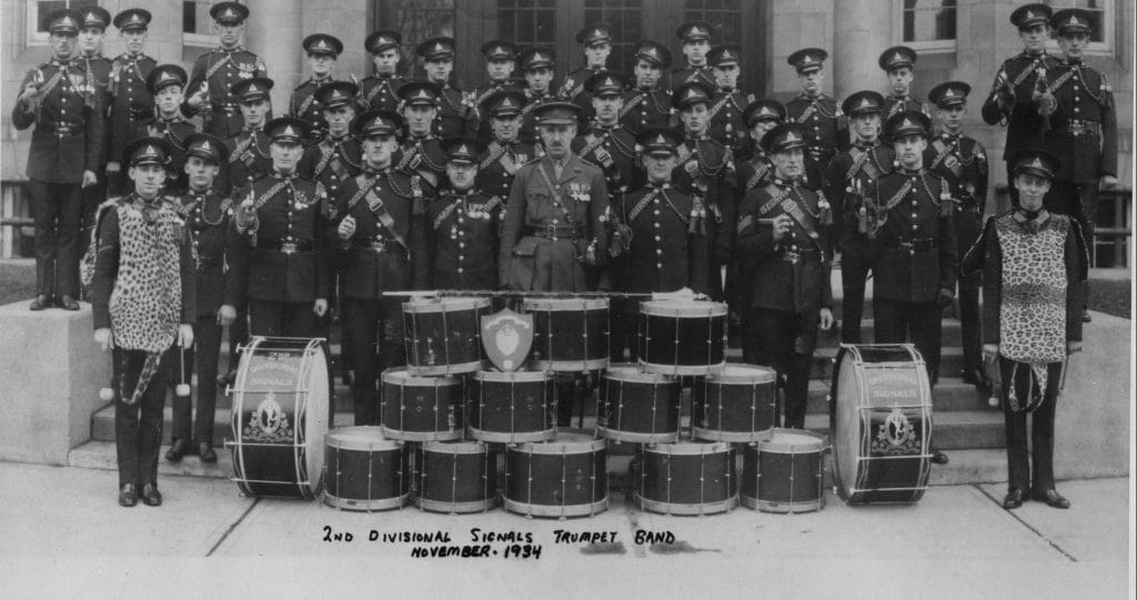 Founded in 1926, the band was originally part of the 2nd Divisional Signals RCCS. The Band was the first to inaugurate the one valve trumpet and introduced the bell lyre into the trumpet and bugle band program of that era. The Band also introduced the sound of three-part harmony in trumpet band music to the Canadian audience.